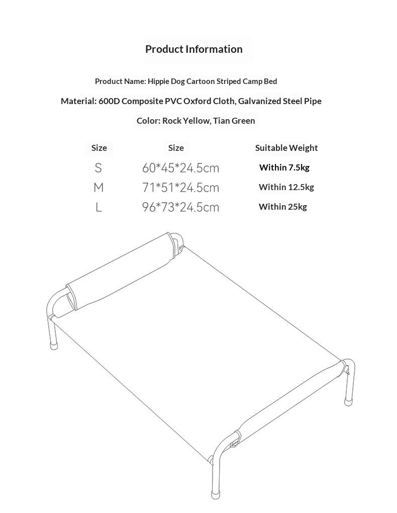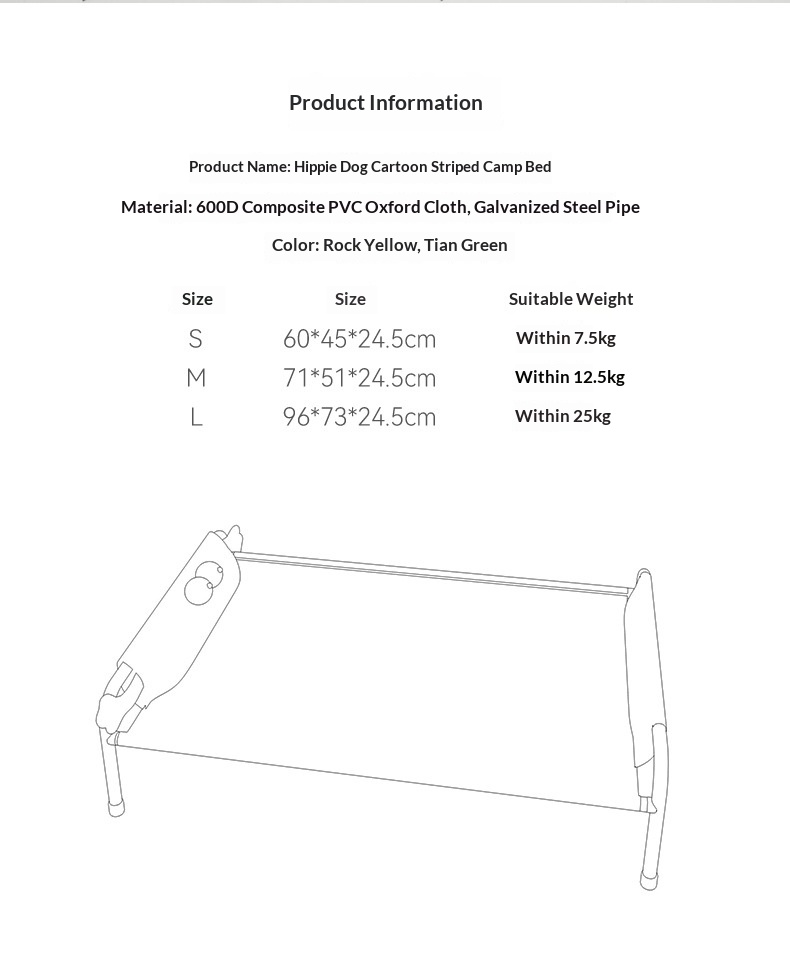 Cartoon Striped Camping Bed For Medium To Large Dogs